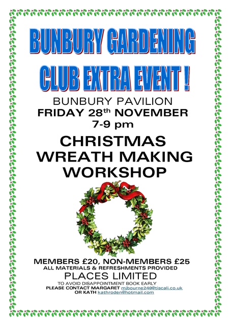 Come and create your very own wreath with Margaret and Kath for just £25 non members or £20 members price! All materials and refreshments provided!